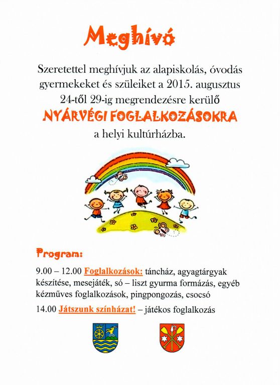 Nyárvégi foglalkozások gyerekeknek