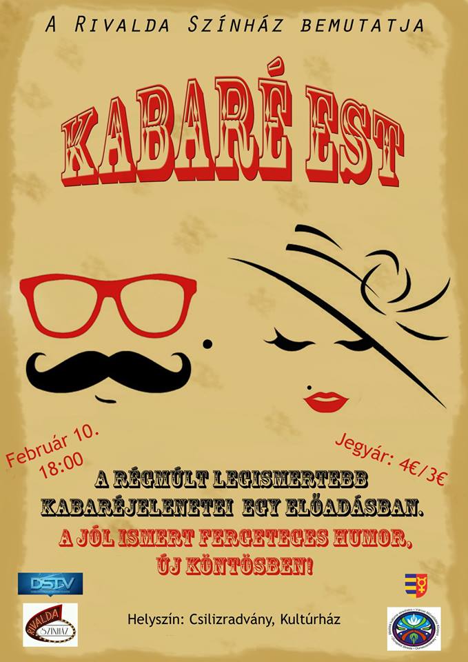 Szeretettel várunk minden érdeklődőt a dunaszerdahelyi RIVALDA SZÍNHÁZ kabaré estéje a csilizradványi kultúrházba 2018. február 10-én /szomabaton/ 18:00 órára.