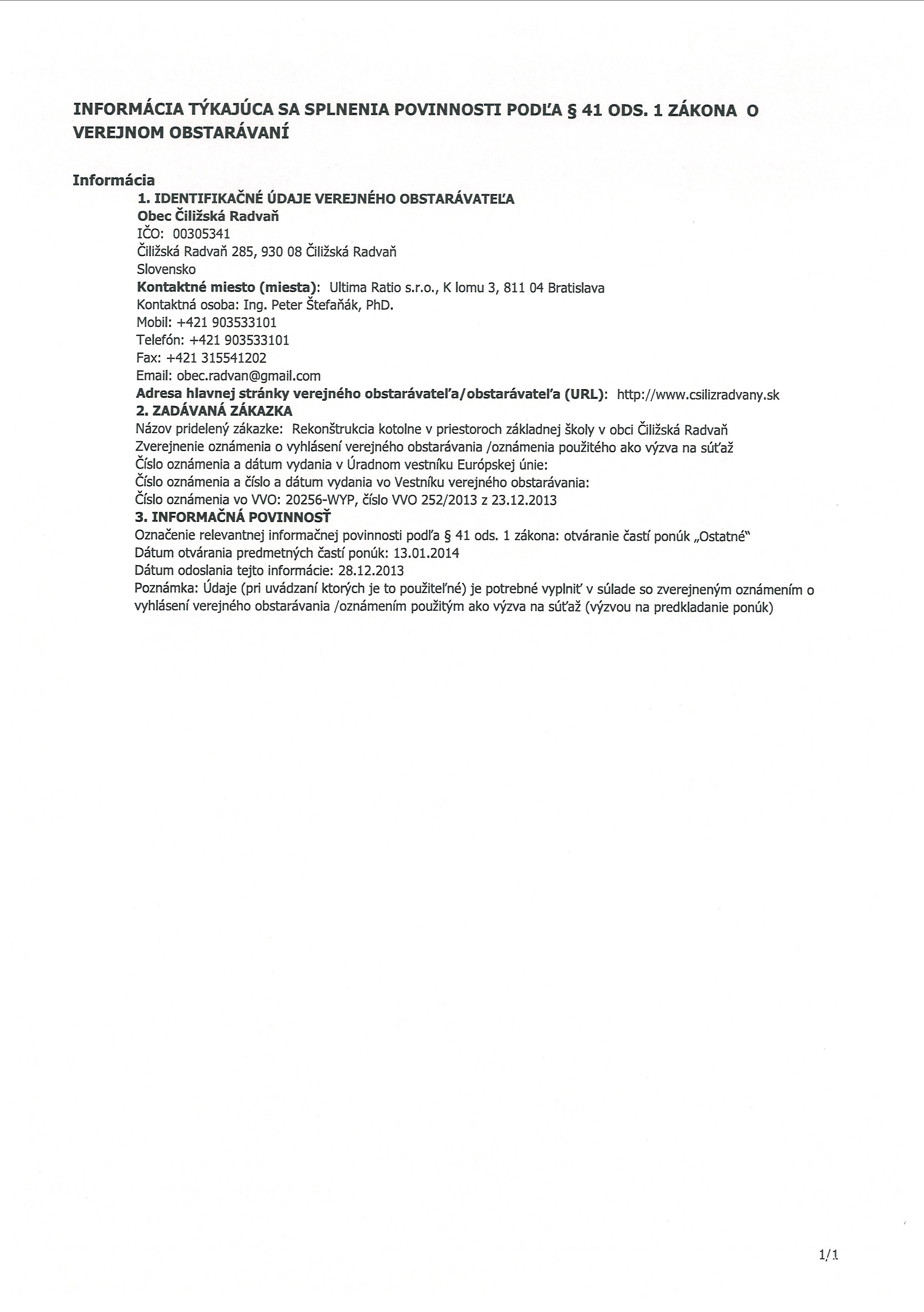 Informácia týkajúca sa splnenia povinnosti